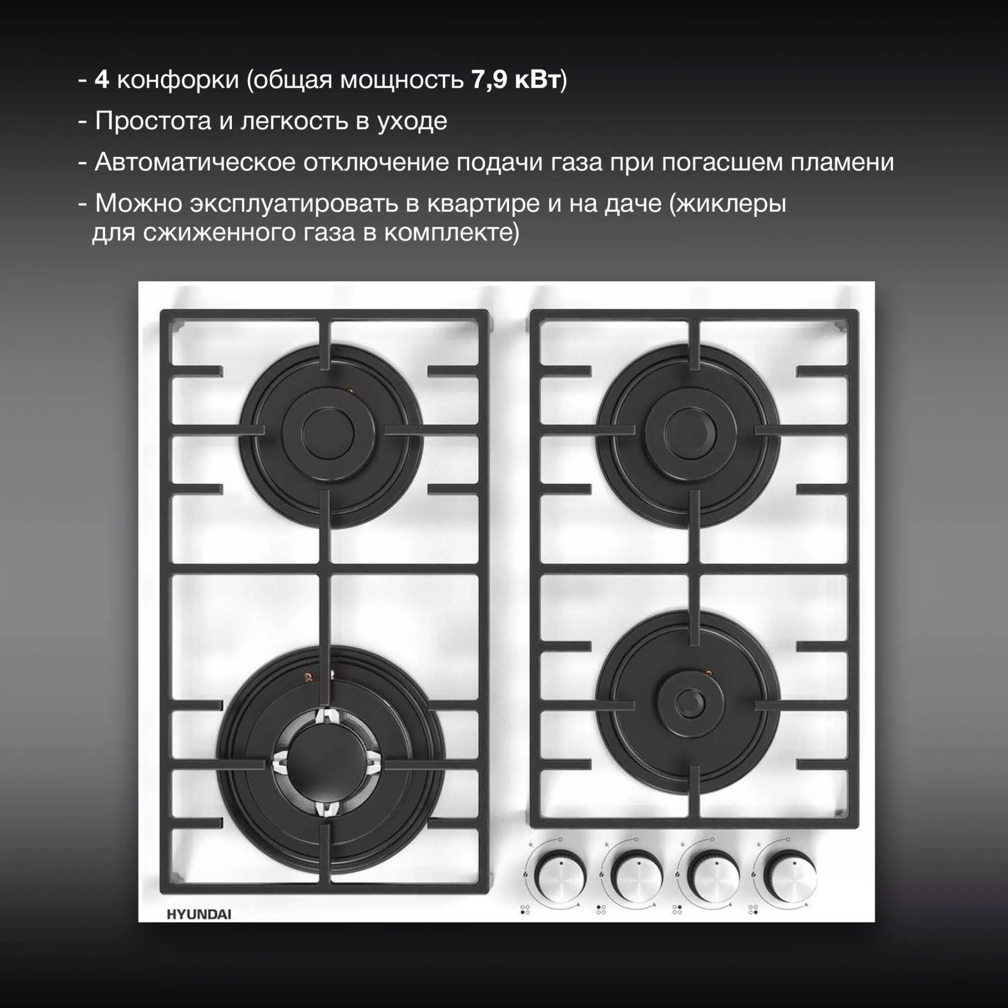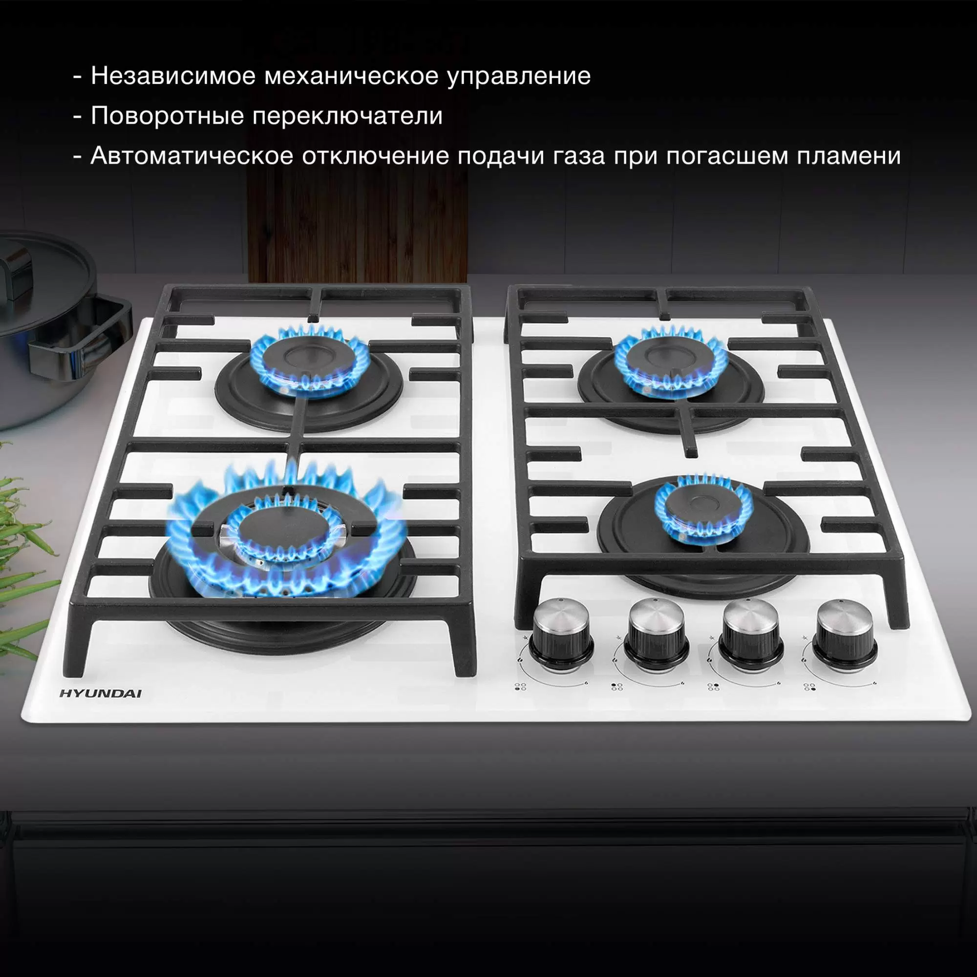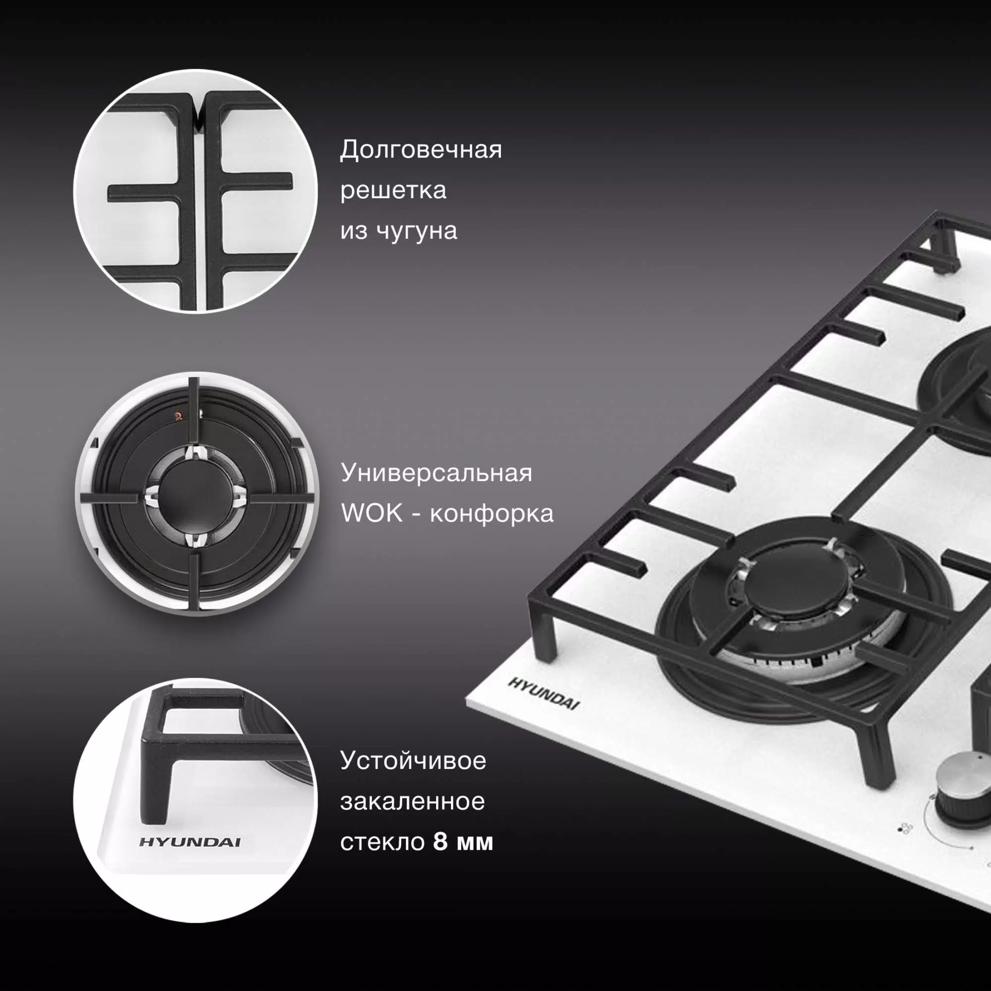 Встраиваемая газовая панель HYUNDAI HHG 6438 WG белый