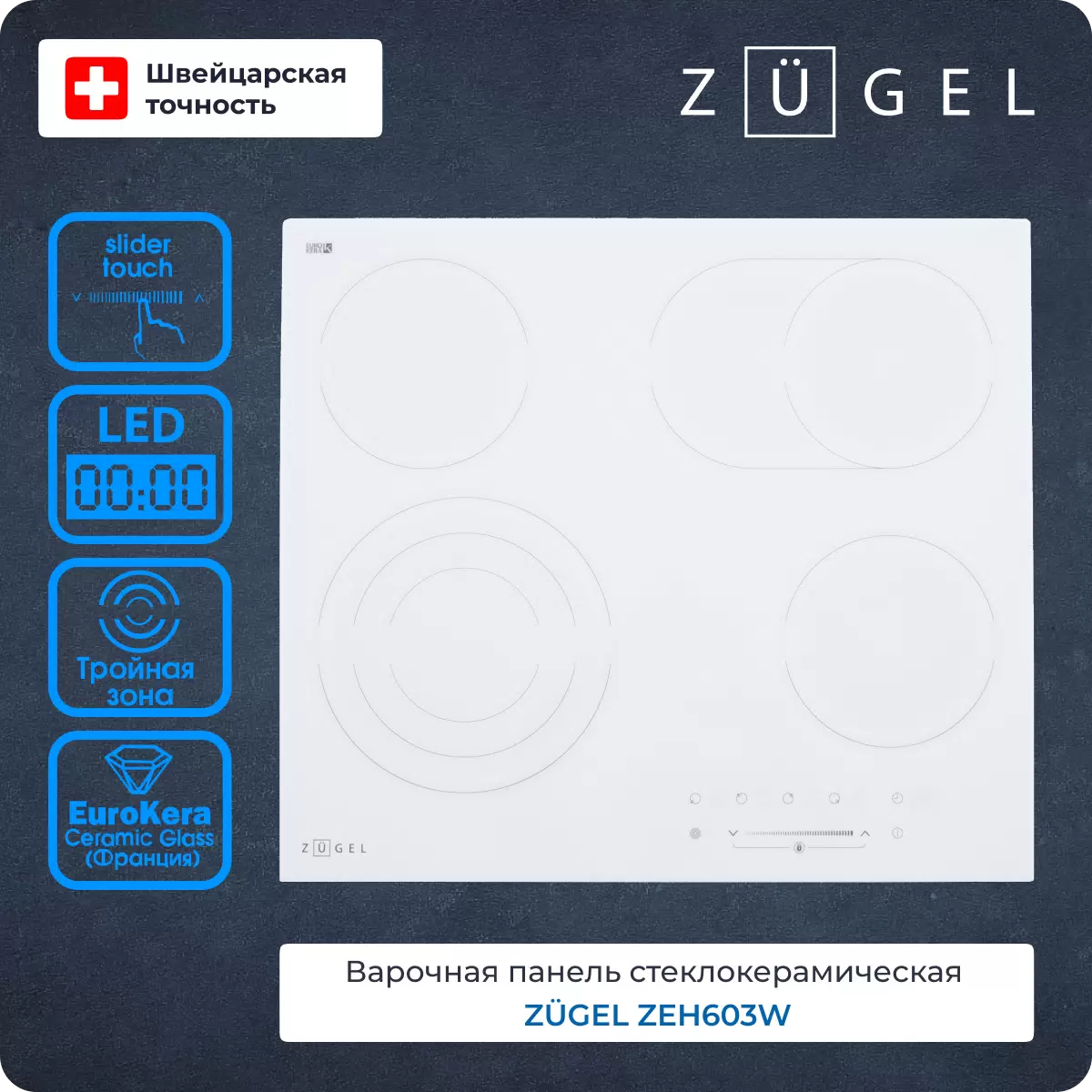 Встраиваемая варочная панель электрическая ZUGEL ZEH603W белый