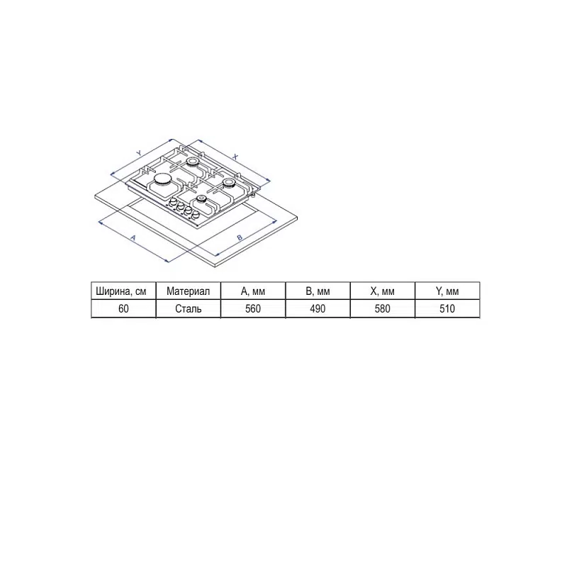 - Мощность конфорок0,9 кВт; 1,7 кВт; 2,5 кВт