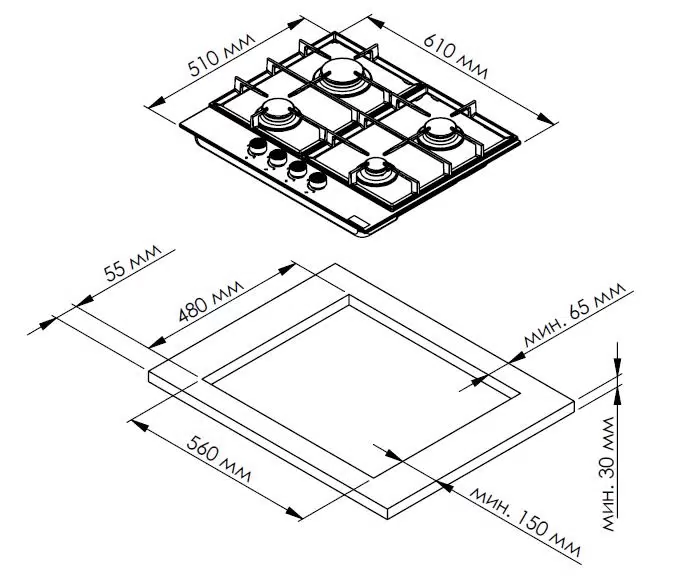 - Мощность конфорок1 кВт; 2 кВт; 3,4 кВт