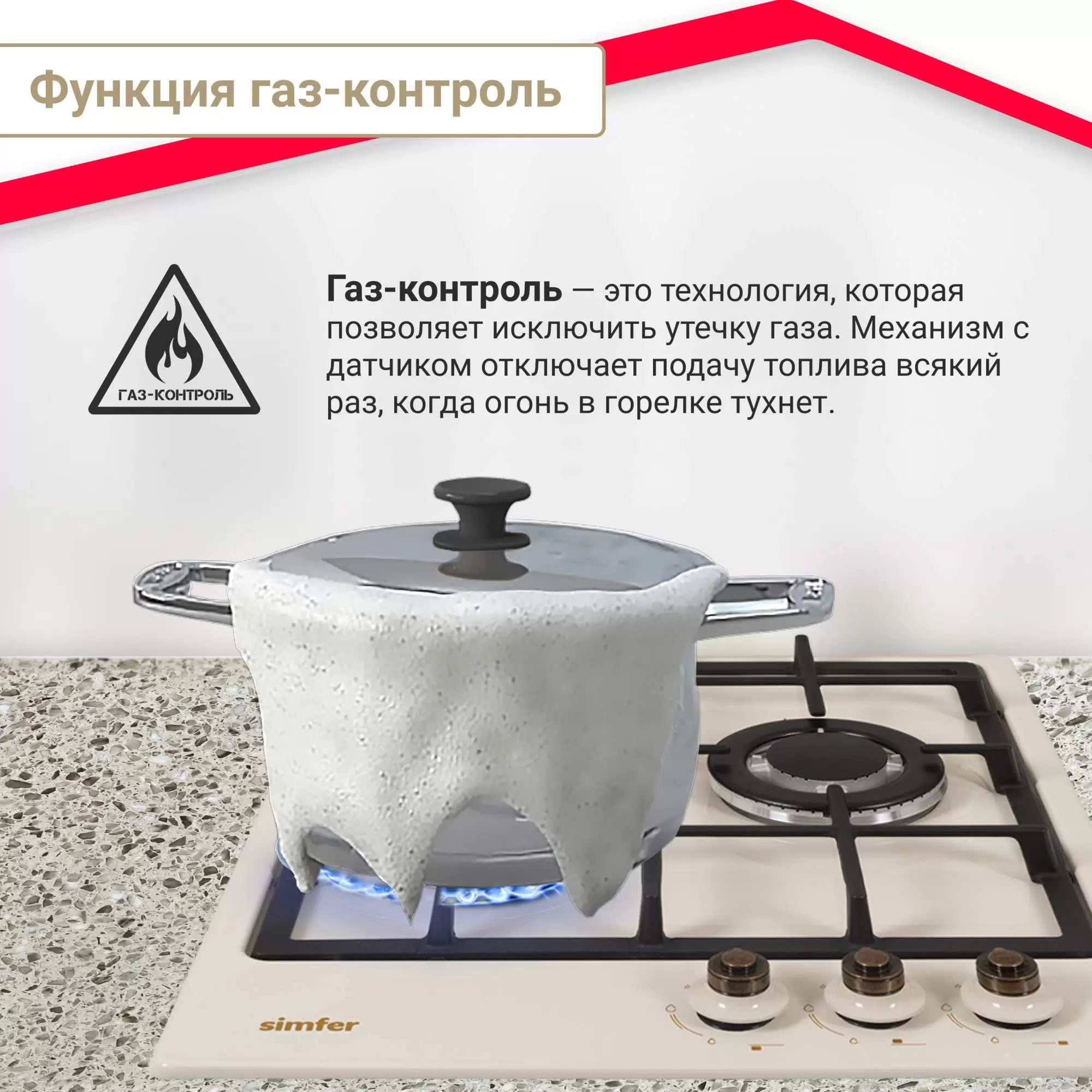 Встраиваемая варочная панель газовая Simfer H45V35O527 бежевый