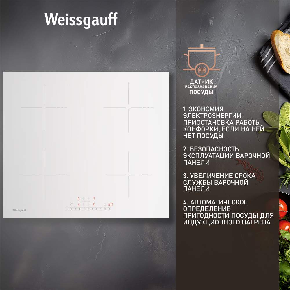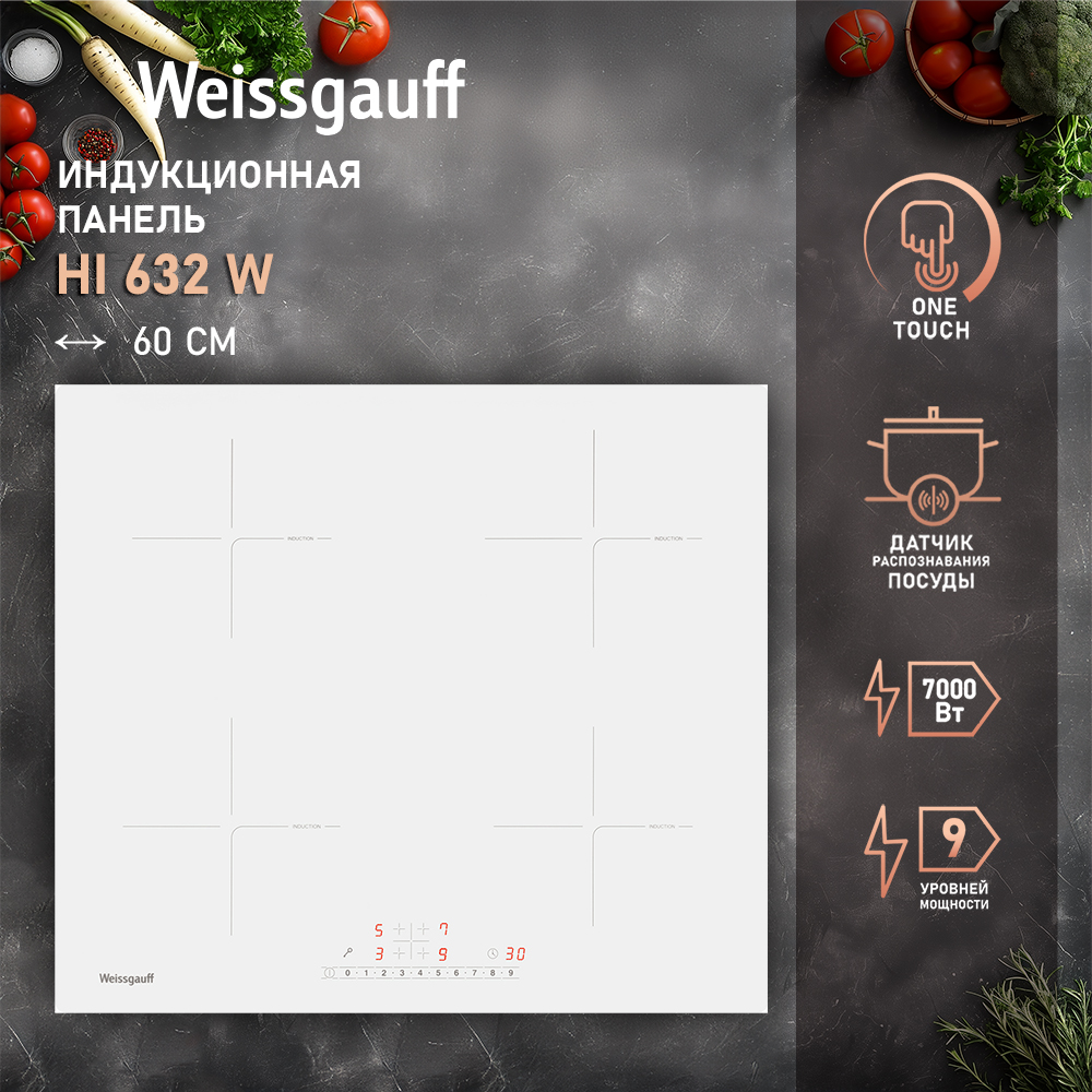Встраиваемая варочная панель индукционная Weissgauff HI 632 W белый