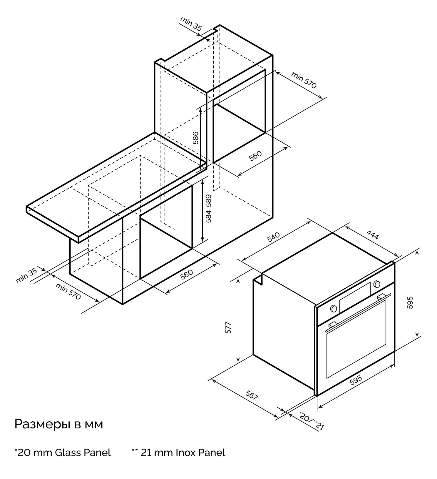 - Высота встраивания, в см60