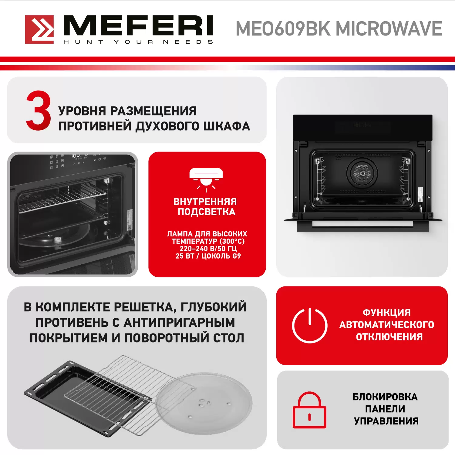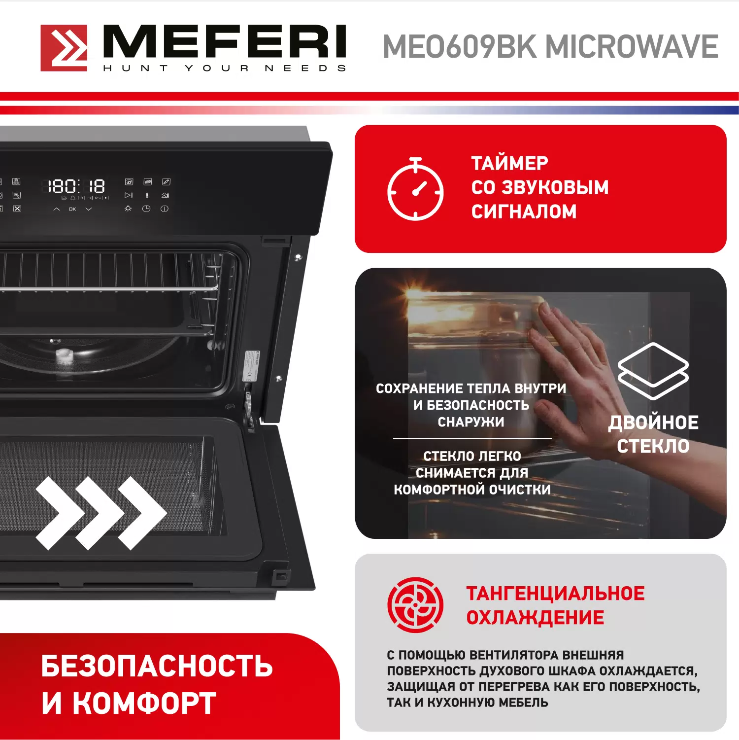 Встраиваемый электрический духовой шкаф MEFERI MEO609BK MICROWAVE черный