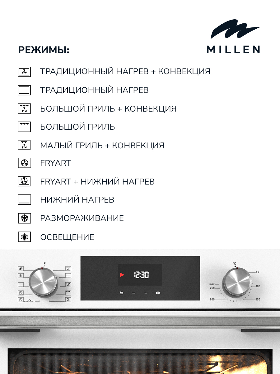 Встраиваемый электрический духовой шкаф MILLEN MEO 6004 WH белый