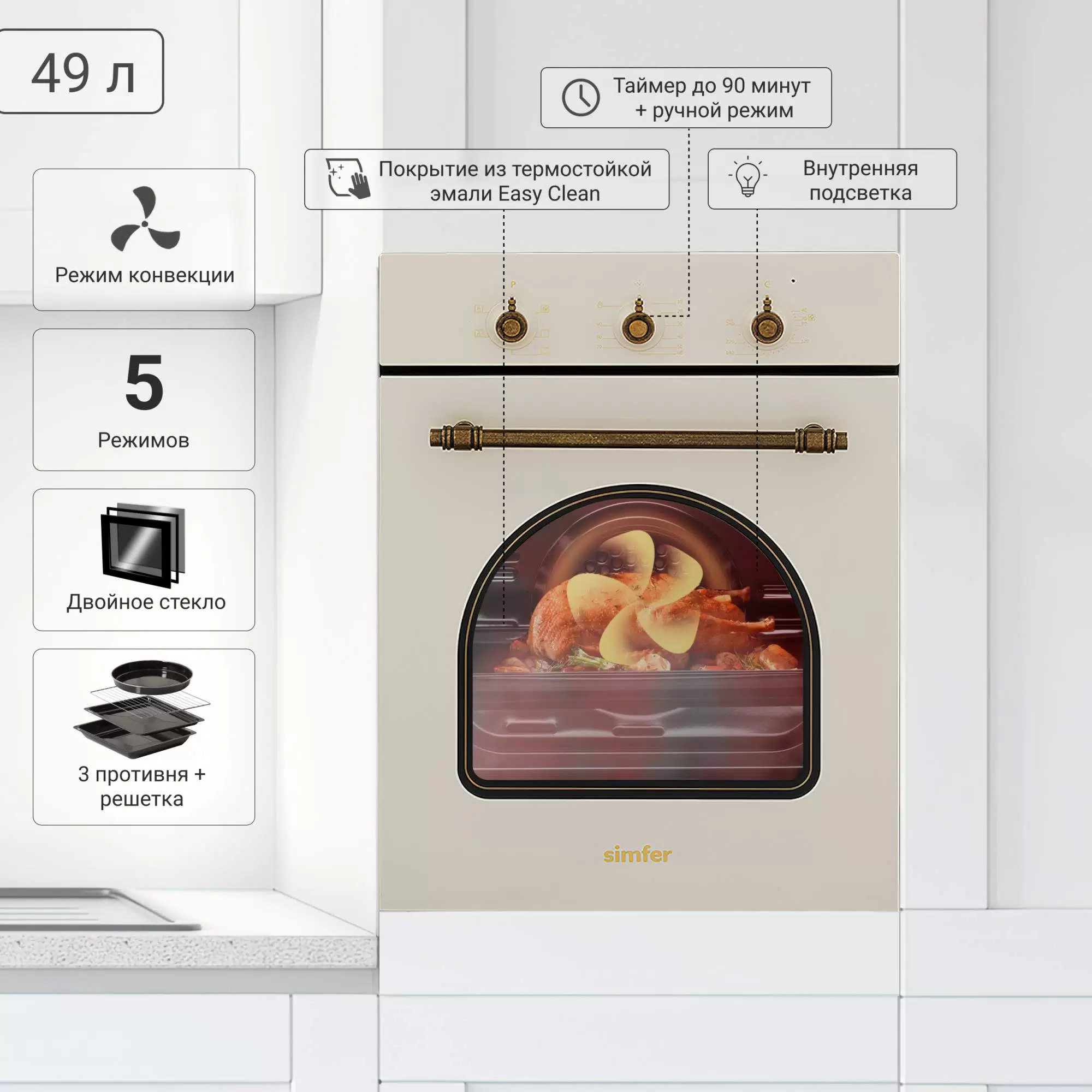 Встраиваемый электрический духовой шкаф Simfer B4EO16017 бежевый