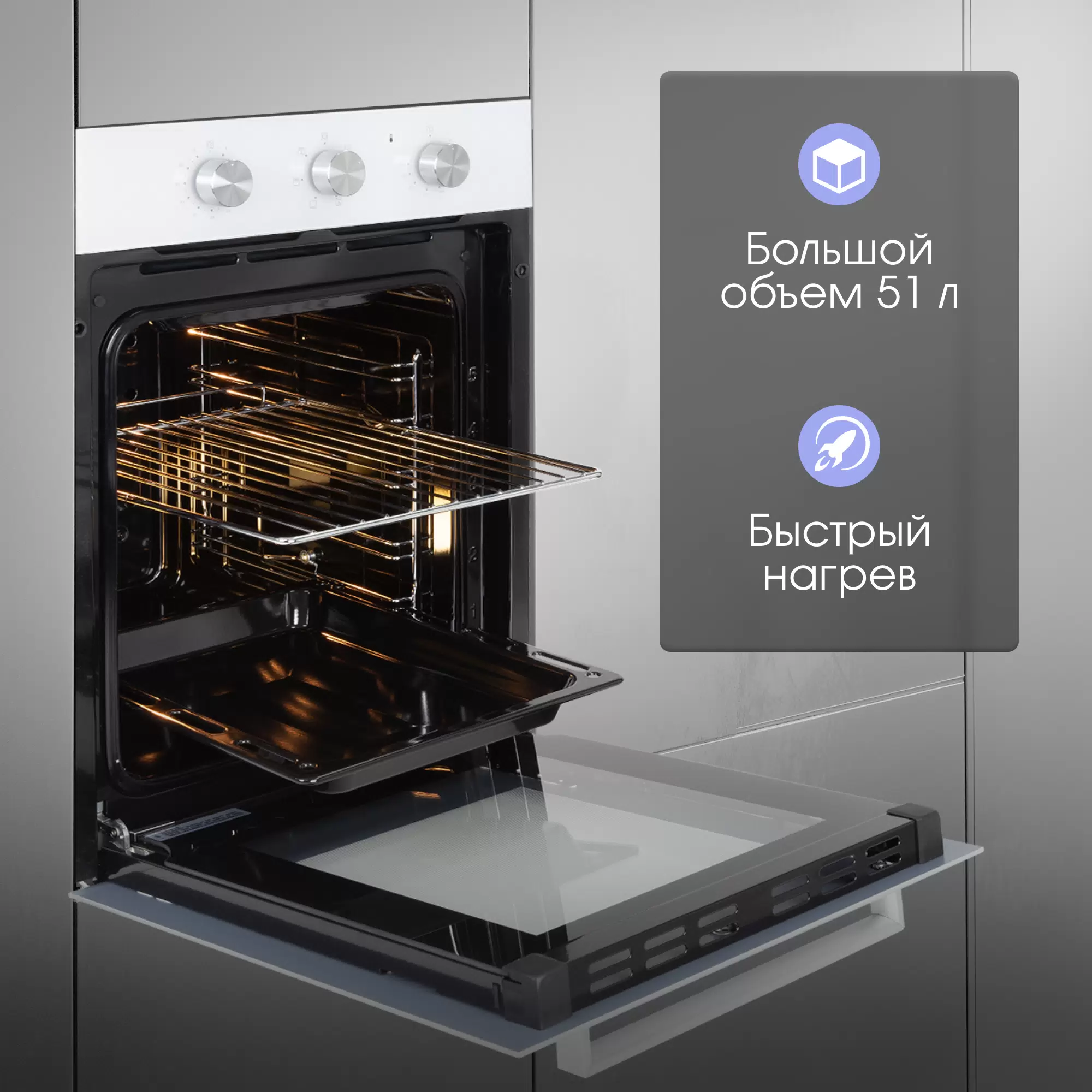 - Комплект поставкидуховой шкаф; противень; решетка; гарантийный талон; инструкция