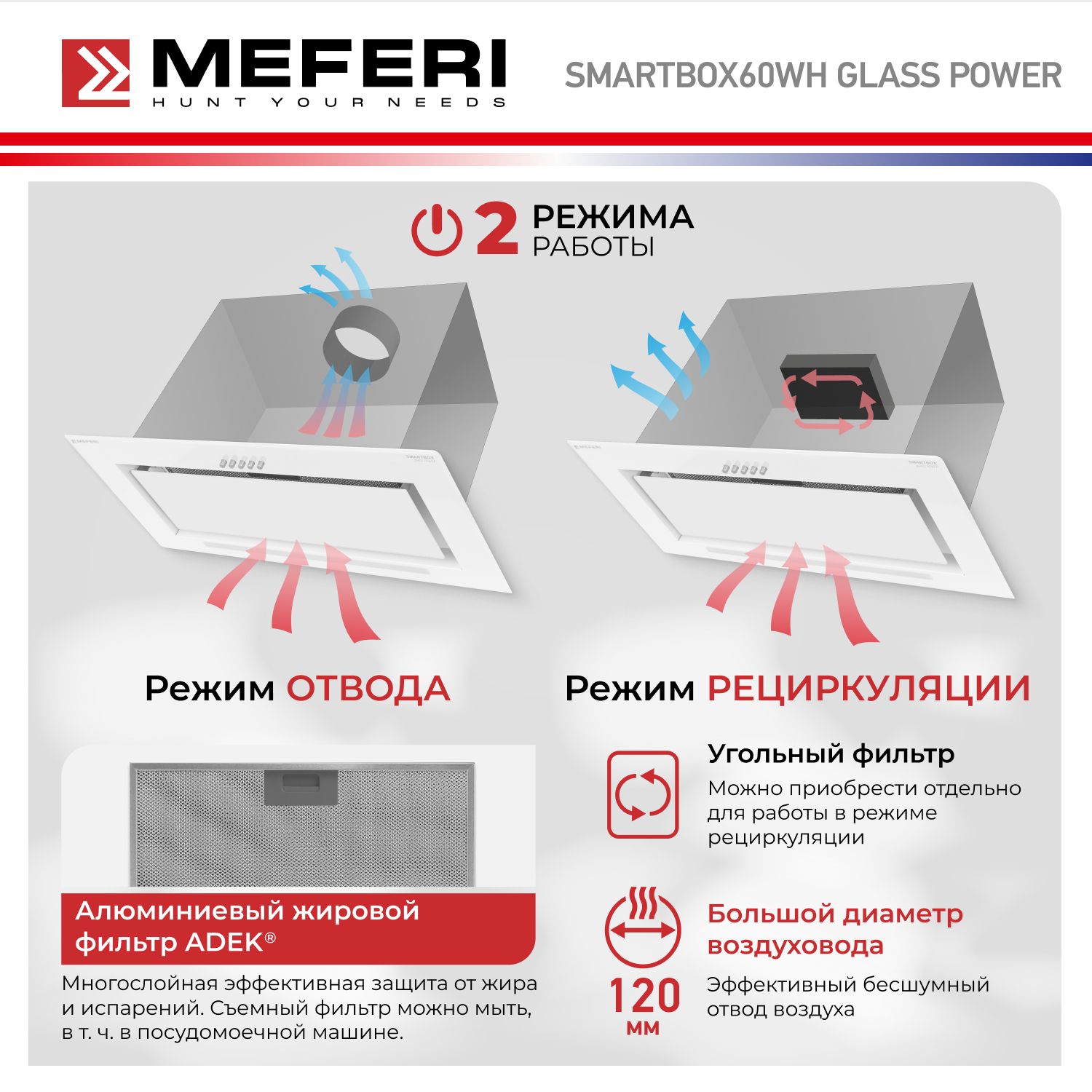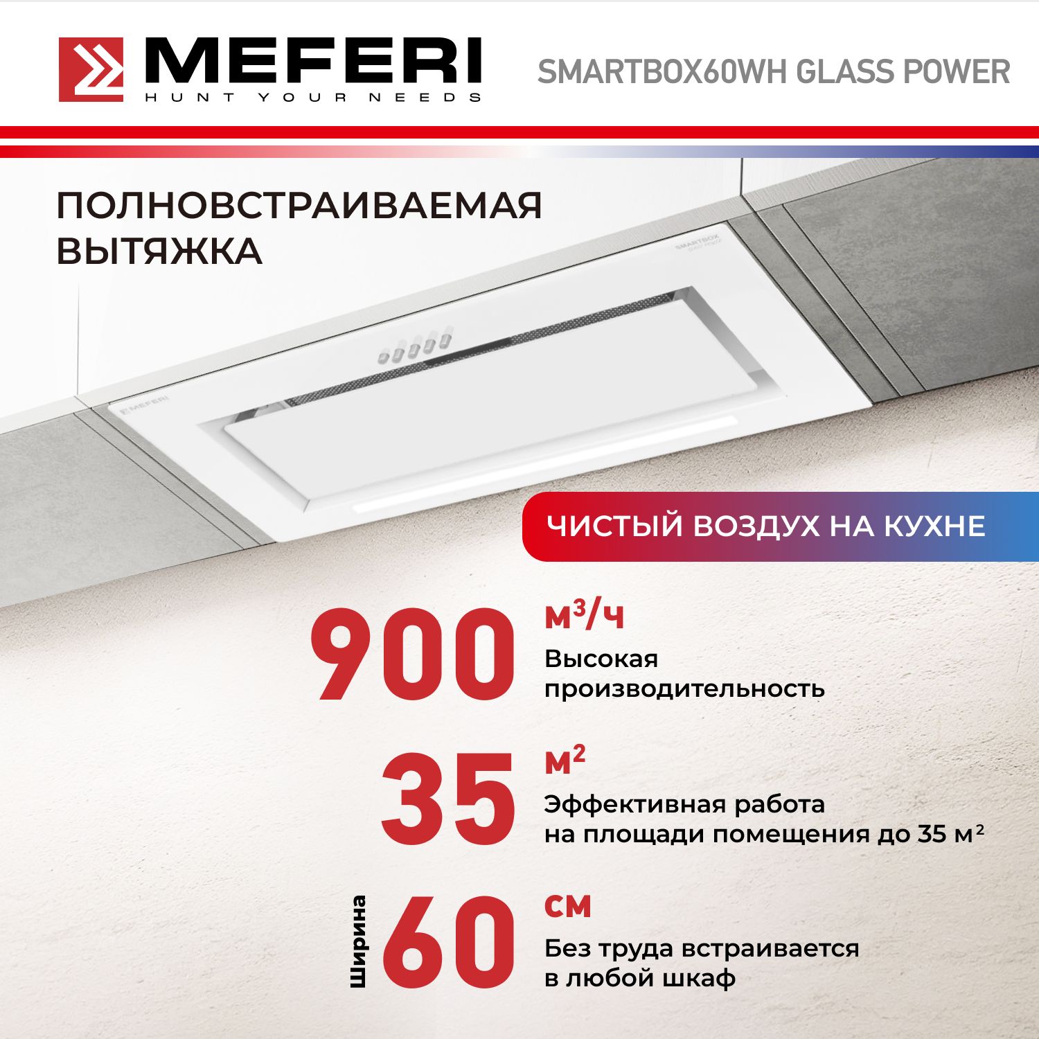 Вытяжка встраиваемая MEFERI SMARTBOX60WH белый