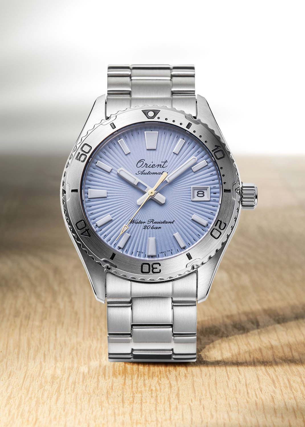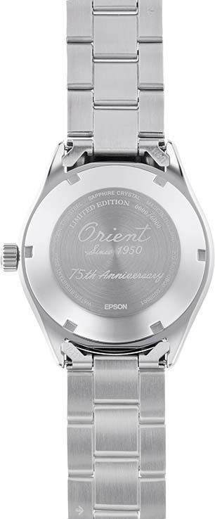 Метки в виде штрихов. Окошко даты находится в положении 3 часа. Завинчивающиеся заводная головка. Завинчивающаяся задняя крышка с надписью ''Orient Since 1950 — 75th Anniversary''. Надежный стальной браслет с раскладывающейся застежкой. Застежка с системой блокировки.
