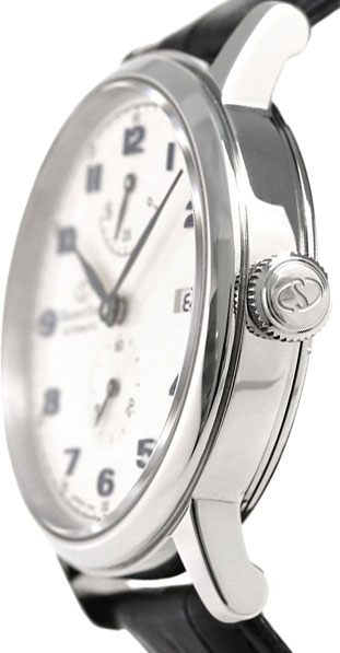 Циферблат с метками в виде арабских цифр защищен прочным сапфировым стеклом. Рифленая заводная головка. Завинчивающаяся прозрачная задняя крышка. Ремешок с раскладывающейся застежкой.