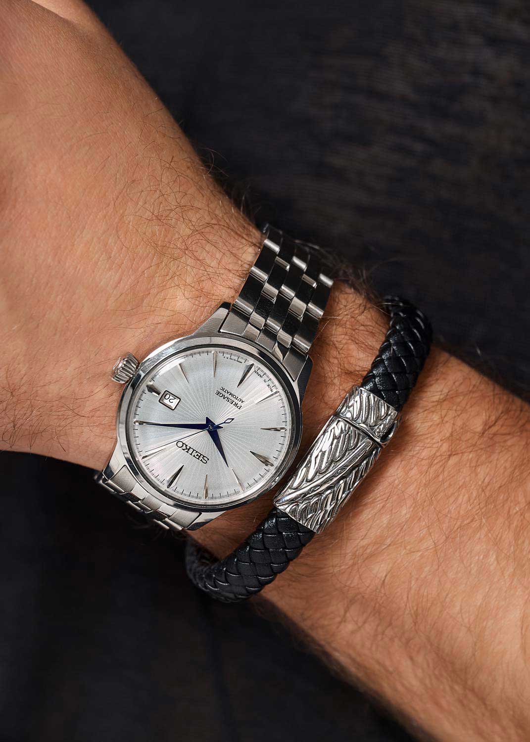 Presage Cocktail Time. Мужские часы. Модель вдохновлена японской культурой коктейлей и другими особыми напитками из бара Star. В этом баре работает знаменитый бармен Хисаши Киши, который специализируется на смешивании японских и международных вкусов. Секундная стрелка выполнена в виде палочки для перемешивания коктейлей.