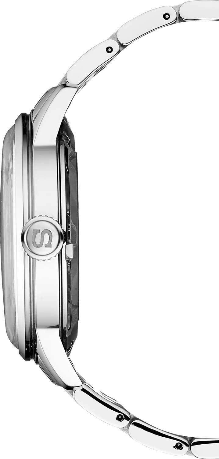 Циферблат с метками в виде штрихов выполнен по технологии Sunray (солнечные лучи). Окошко даты находится в положении 3 часа. Рифленая заводная головка. Завинчивающаяся прозрачная задняя крышка. Браслет с раскладывающейся застежкой.
