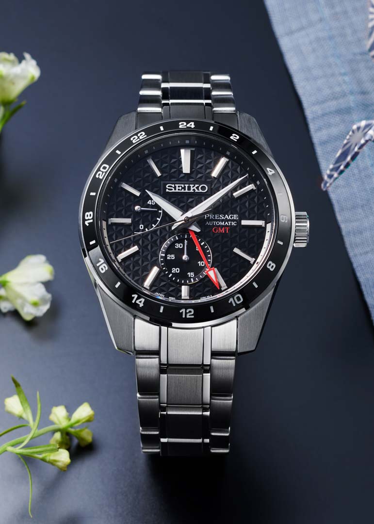 Presage Sharp Edged GMT. Мужские часы. Дизайн циферблата вдохновлен древним узором «Асаноха», который был замечен на предметах японских ремесленников с периода Хэйан (794–1185г) более 10 000 лет назад.