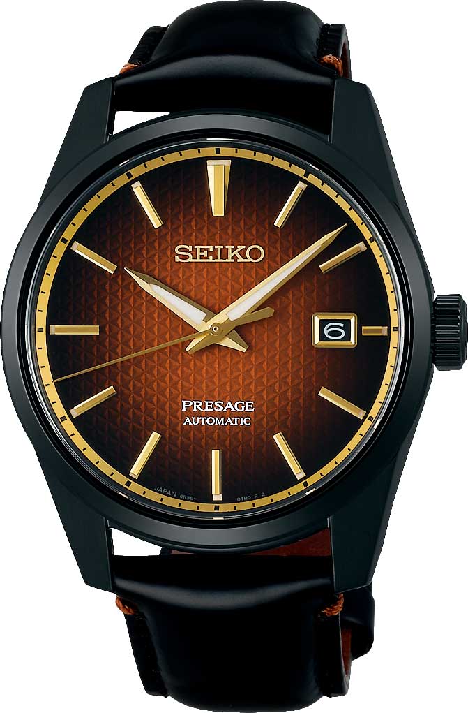 Presage Sharp Edged Kabuki. Лимитированная серия - 2000 экземпляров. Дизайн циферблата вдохновлен древним узором «Асаноха», который был замечен на предметах японских ремесленников с периода Хэйан (794–1185г) более 10 000 лет назад. В механизме 24 камня, частота 21600 полуколебаний в час. Запас хода 70 часов. Возможность ручного завода. Функция stop-second. Метки в виде штрихов. Окошко даты находится в положении 3 часа. Завинчивающаяся прозрачная крышка с выгравированным индивидуальным серийным номером. Ремешок с тройной раскладывающейся застежкой.