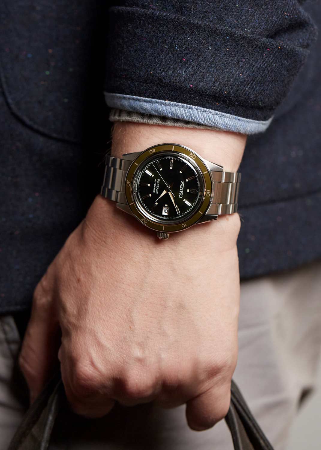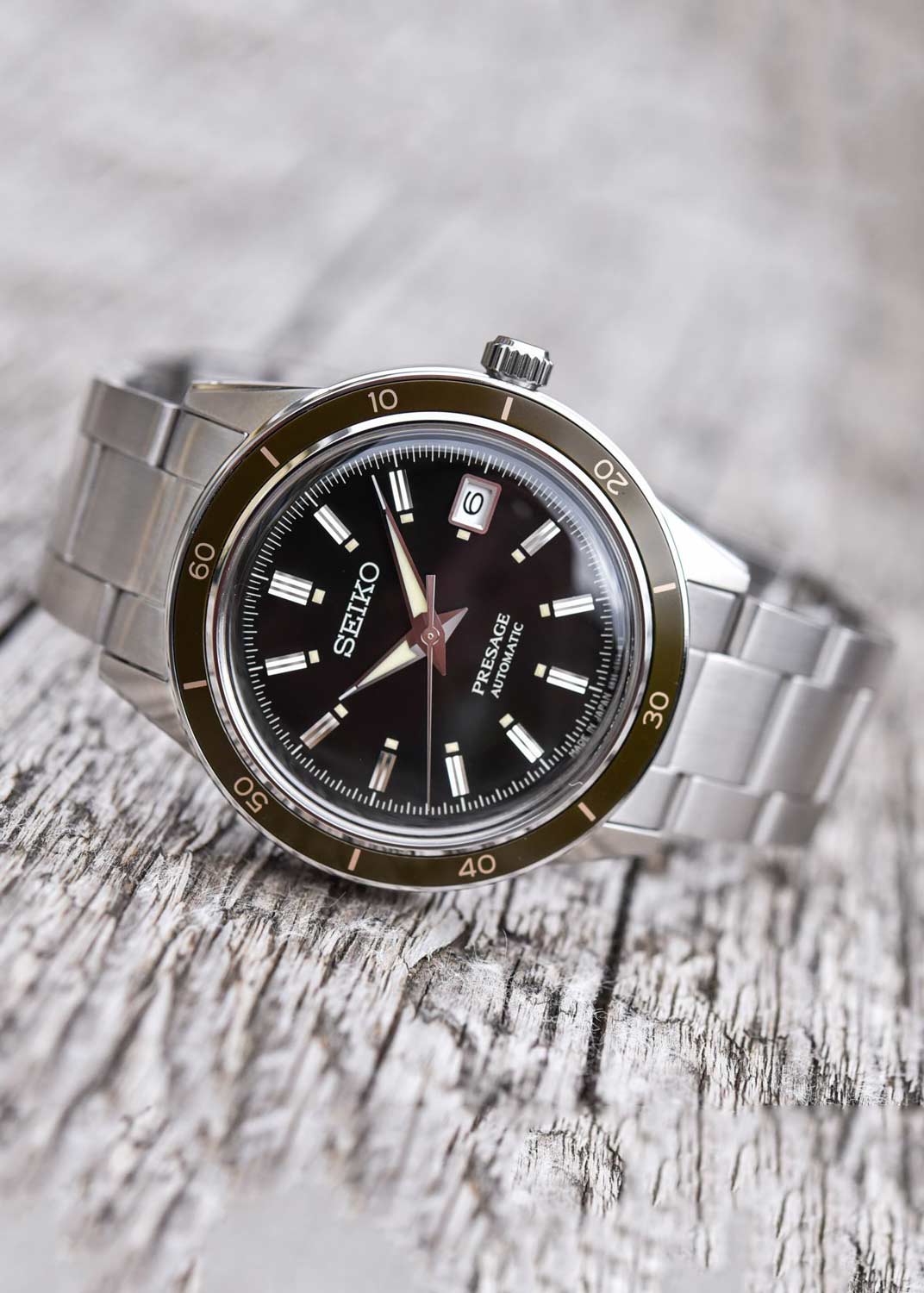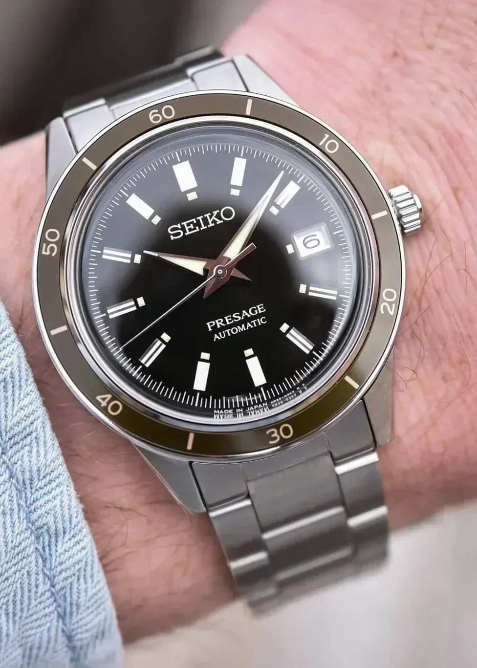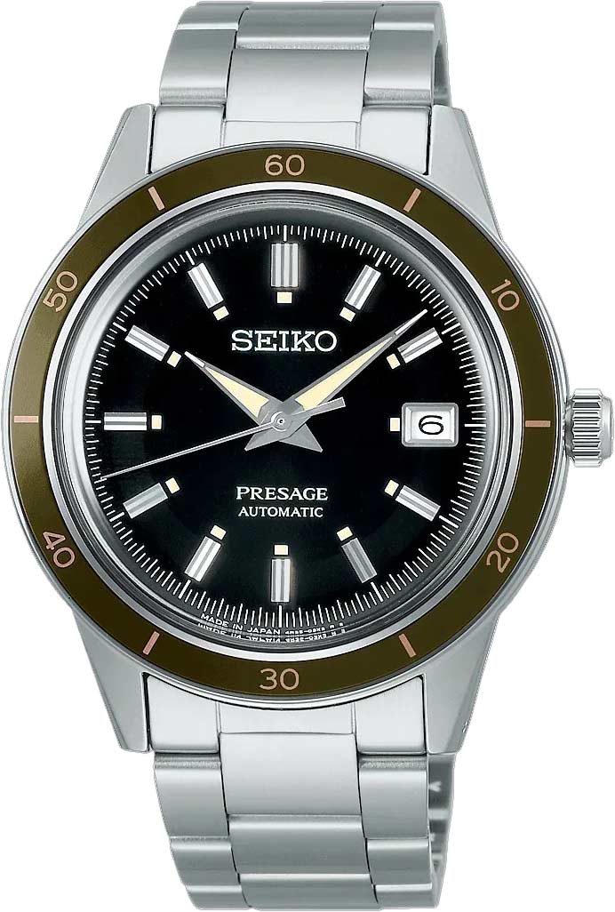 Мужские механические часы Presage Style60's, вдохновленные моделью Crown Chronograph 1964 года. В механизме 23 камня. Запас хода 41 час. Возможность ручного завода. Функция stop-second.