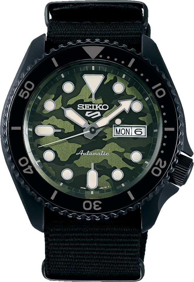 Крутые часы Seiko с камуфляжным циферблатом - это выбор современных и стильных парней. 5 Sports SKX. Мужские часы. В механизме 24 камня, частота 21600 полуколебаний в час. Запас хода 41 час. Возможность ручного завода. Функция stop-second. Защищены от магнитных полей (до 4800 А/м). Циферблат с метками в виде точек и штрихов. Стрелки и метки с фирменным люминесцентным покрытием LumiBrite, которое светится в темноте после непродолжительной подзарядки на свету. Окошко даты и дня недели находится в положении 3 часа. Безель вращается в одном направлении. Заводная головка с защитой находится в положении 4 часа. Завинчивающаяся прозрачная задняя крышка. Ремешок с классической застежкой.