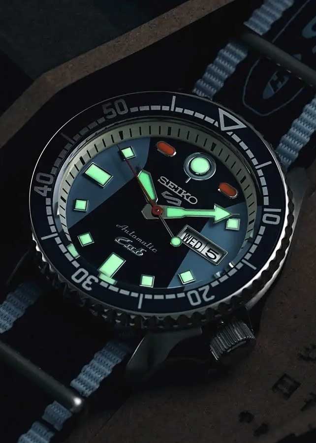 5 Sports SKX. Лимитированная серия — 7500 экземпляров. Модель посвящена и выполнена в цветах популярного городского скутера Honda Super Cub, который выпускается с непринципиальными изменениями с 1958 года по настоящее время. В 2017 году тираж достиг 100млн выпущенных экземпляров. Отметка «12 часов» на циферблате напоминает фару, а оранжевые метки «1» и «11» часов напоминают поворотники скутера.