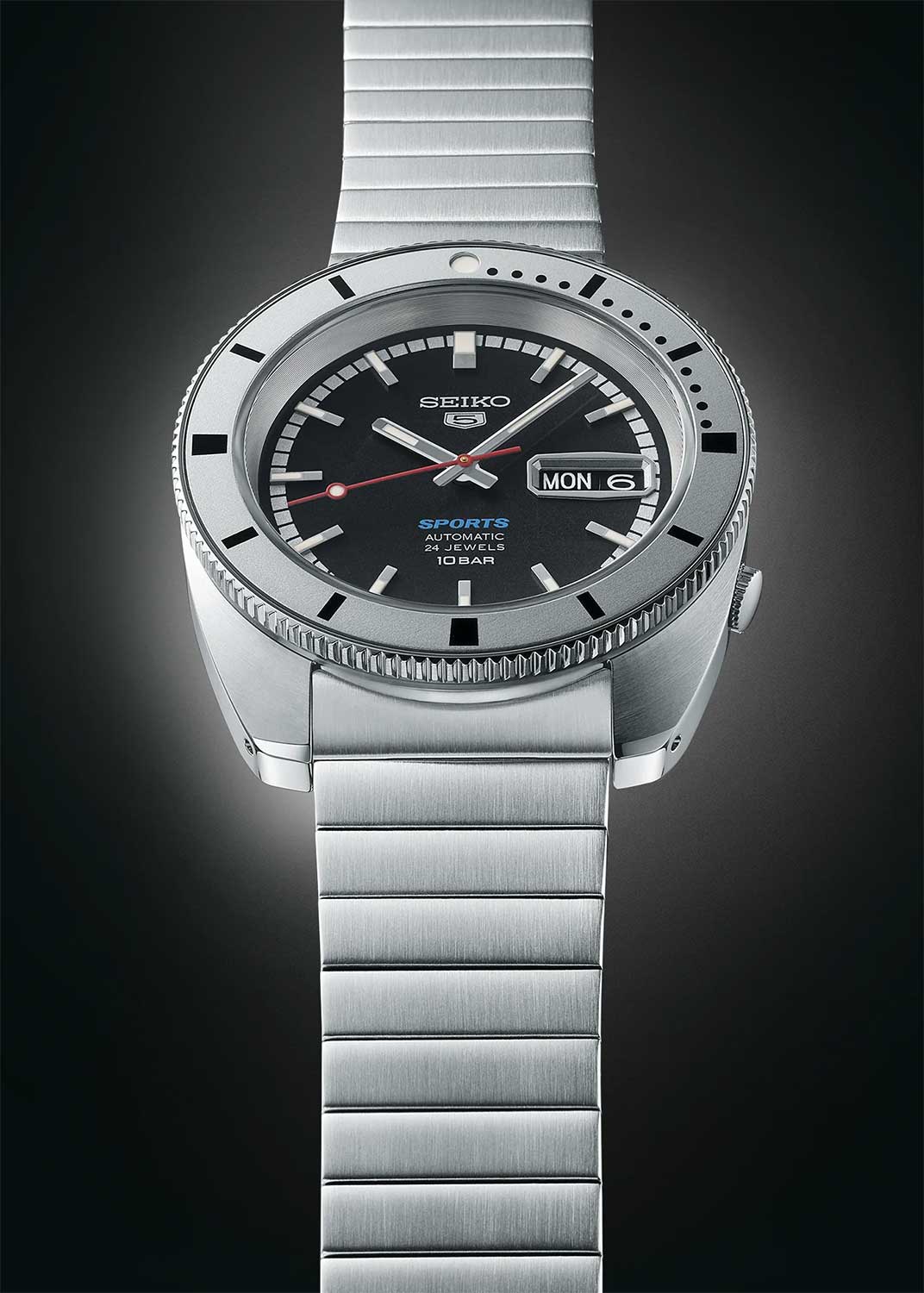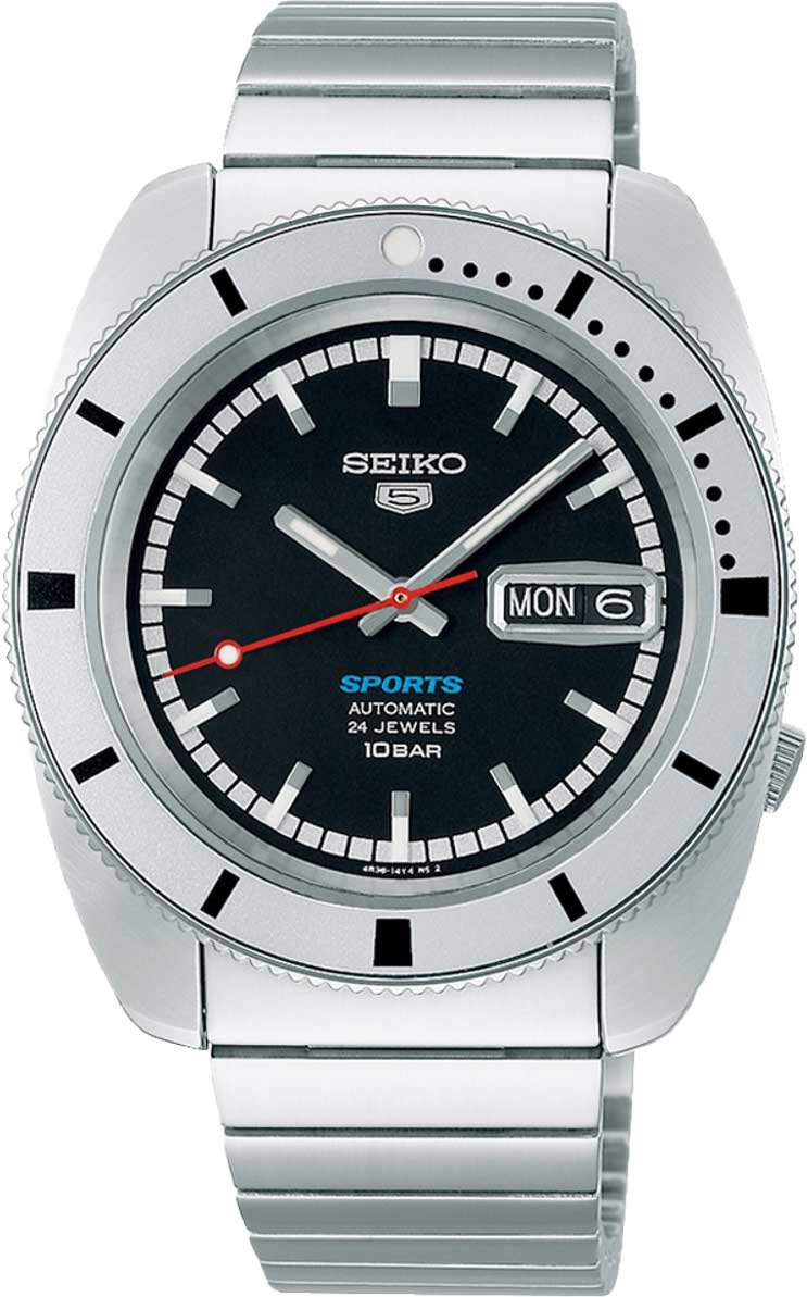 5 Sports Heritage Design Re-creation. Лимитированная серия - 9999 экземпляров. Модель вдохновлена часами Seiko, которые были популярны в 1960-х годах. В механизме 24 камня, частота 21600 полуколебаний в час. Запас хода 41 час. Функция stop-second. Возможность ручного завода.