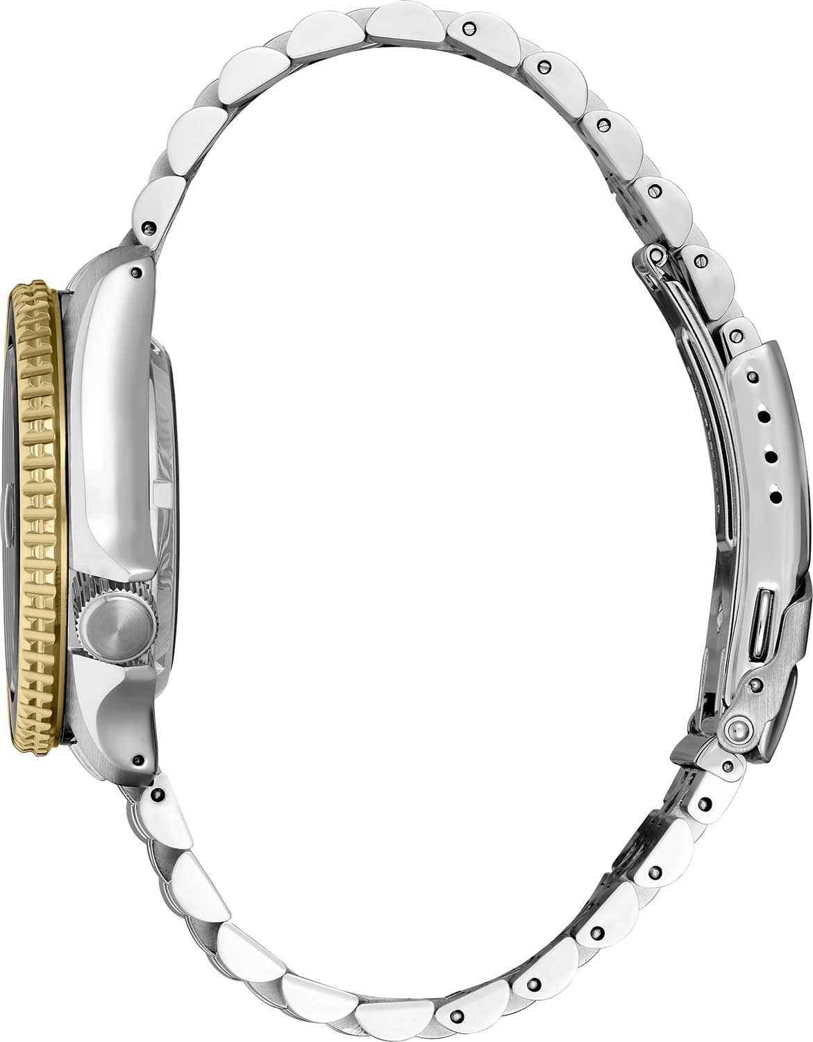 с 24-х часовой шкалой. Завинчивающиеся прозрачная задняя крышка. Браслет с раскладывающейся застежкой. Застежка с системой блокировки.
