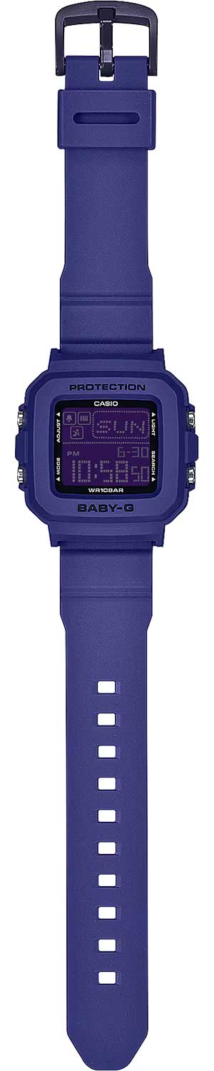 Причудливый дизайн этих часиков создаст уникальный образ любой активной девушки. Baby-G + Plus. Модель посвящена 30-летию коллекции Baby-G. Противоударный корпус защищает механизм от ударов и вибрации. Циферблат подсвечивается светодиодом. Послесвечение (2сек). Цвет подсветки: белый. При активации подсветки на экране появится случайная пиксельная анимация (серфер, танцор, дельфин, иглобрюхая рыба, собака, кошка). 12-ти и 24-х часовой формат времени. Секундомер с точностью показаний 1/100с и временем измерения 24ч. SPLIT-хронограф. Таймер обратного отсчета от 1мин до 24ч. Мировое время – 30 городов (29 часовых поясов). Функции включения/отключения летнего времени, включения/отключения звука. Батарея рассчитана на 3 года. Стальная задняя крышка крепится на 4-х винтах. Ремешок с классической застежкой. В комплекте набор наклеек и специальный держатель, в который без дополнительных инструментов вы сможете вставить часы и получить стильный брелок.