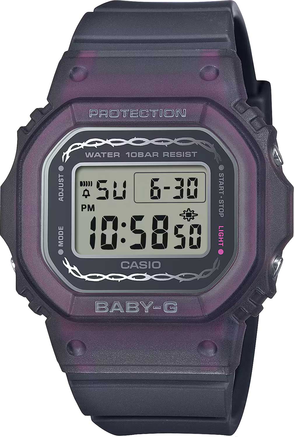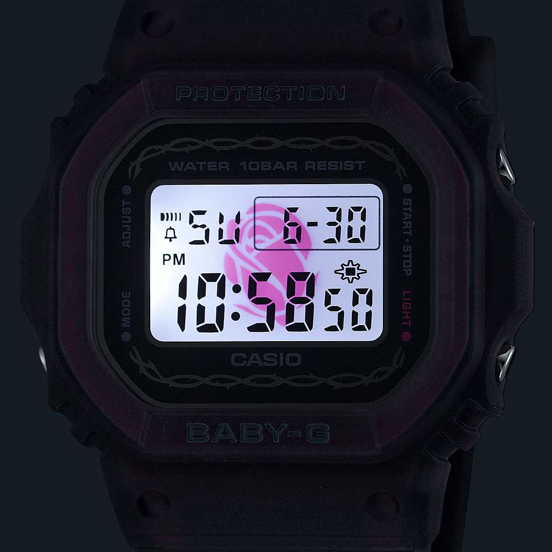 Если вы ведете активный образ жизни, тогда эти спортивные противоударные часы от Casio созданы для вас. Baby-G. Женские часы. Розоватый цвет символизирует элегантность и благодарность. Противоударный корпус защищает механизм от ударов и вибрации. Циферблат подсвечивается светодиодом. Послесвечение. Цвет подсветки: белый. При активации подсветки на циферблате появляется изображение розы. Световая индикация сигнала. Типы сигналов: ежедневный, ежемесячный, каждый день определенного месяца, на определенную дату. 12-ти и 24-х часовой формат времени. Секундомер с двумя точностями показаний: 1/100с (до 1ч) и 1с (после 1ч) и временем измерения 24ч. SPLIT-хронограф. Таймер обратного отсчета от 1сек до 24ч с автоповтором. Батарея рассчитана на 3 года. Стальная задняя крышка крепится на 4-х винтах. Ремешок выполнен из биопластика, который изготавливается из возобновляемых органических ресурсов. Классическая застежка и система быстрой замены ремешка. Имеется мужской вариант модели DW-5600RS-8.
