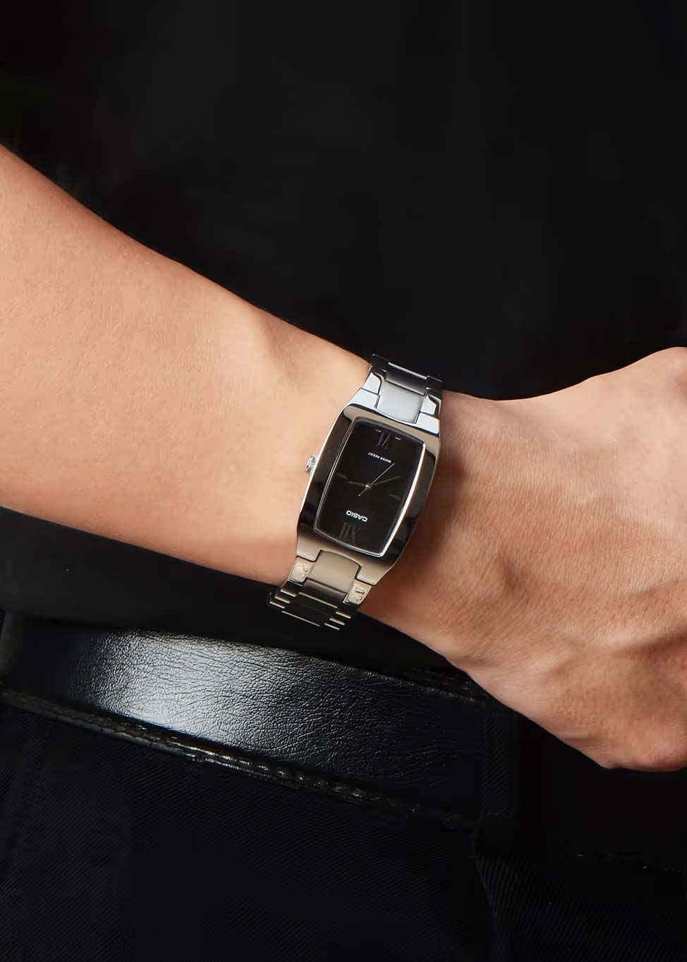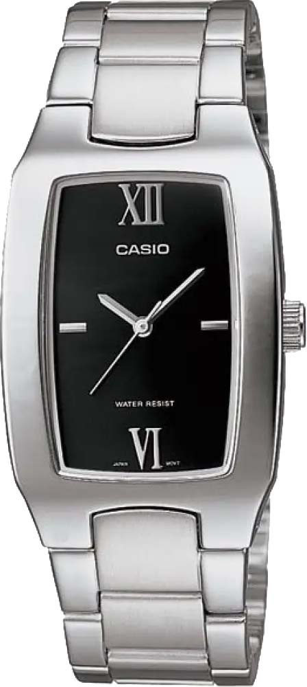 Standard. Наручные мужские часы. Стальной корпус бочка. Циферблат с метками в виде штрихов и римских цифр XII и VI. Мечевидные стрелки в стиле Sword. Рифленая заводная головка. Надежный стальной браслет с раскладывающейся застежкой. Имеется женский вариант модели LTP-1165A-1C2