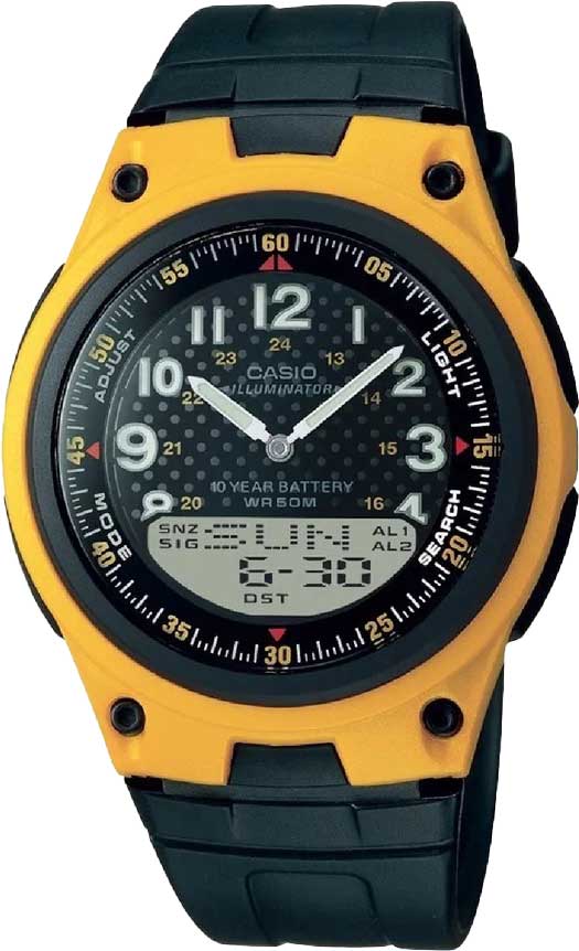 Collection. Циферблат подсвечивается светодиодом. Послесвечение. Цвет подсветки: оранжевый. 12-ти и 24-х часовой формат времени. Секундомер с точностью показаний 1/100с и временем измерения 24ч. SPLIT-хронограф. Таймер обратного отсчета от 1мин до 1ч. Мировое время – 30 городов (29 часовых поясов). Функция включения/отключения летнего времени. Записная книжка на 30 ячеек памяти с функцией сортировки для записи имен и телефонных номеров, каждая запись может включать в себя текст из 8 букв и 16 цифр. Стальная задняя крышка крепится на 4-х винтах. Батарейка рассчитана на 10 лет.