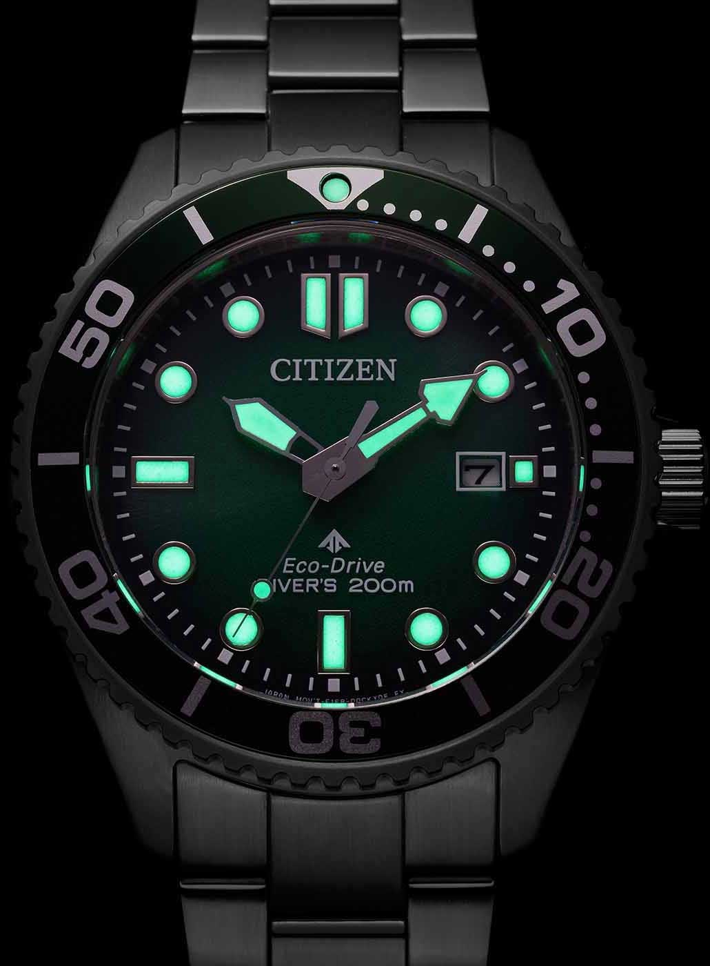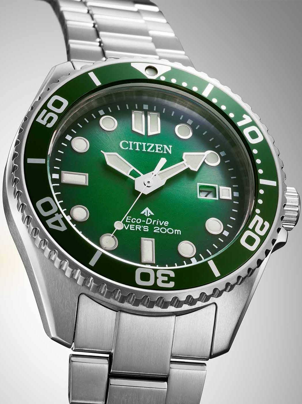 Promaster Diver. Сертифицированные часы для дайвинга (ISO). Система Eco-Drive, не требующая замены батарейки. Питание от солнечной энергии, запас энергии на 180 дней. Функция индикации заряда (EOL) и предотвращения перезарядки. Защищены от магнитных полей.