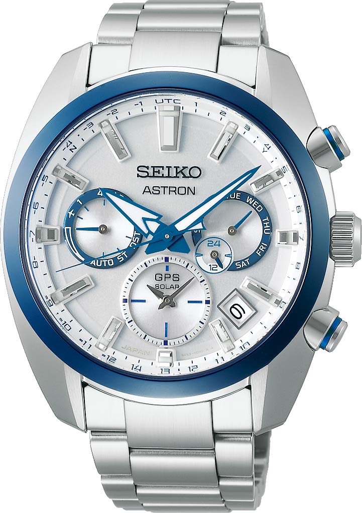 Astron GPS Solar. Лимитированная серия - 1400 экземпляров. Модель посвящена 140-летию со дня основания Кинтаро Хаттори компании Seikosha. В механизме 12 камней. Часы со встроенным GPS-приемником определяют часовой пояс, дату и точное время.