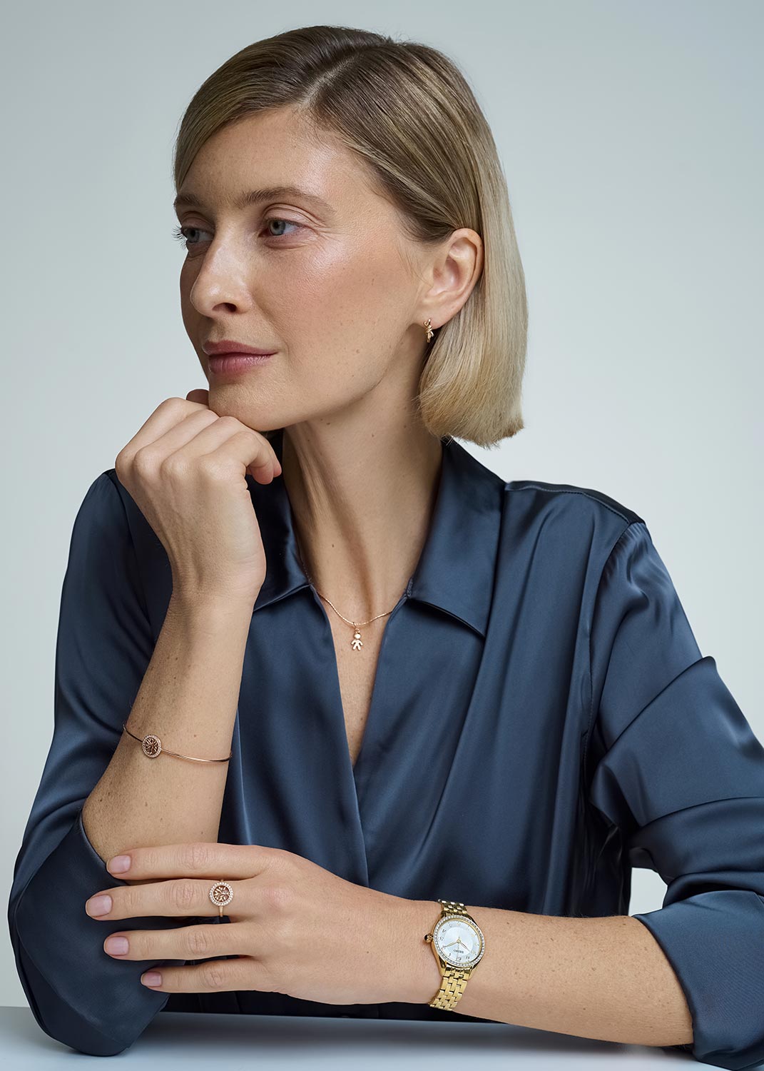 Essentials. Кварцевые оригинальные наручные часы. Круглый стальной корпус с минеральным стеклом. Безель украшен паве из кристаллов. Циферблат украшен радиальным декоративным узором. Листовидные стрелки в стиле Feuille. Метки в виде арабских цифр. Рифленая заводная головка украшена камнем в форме кабошона. Надежный стальной браслет с раскладывающейся застежкой.