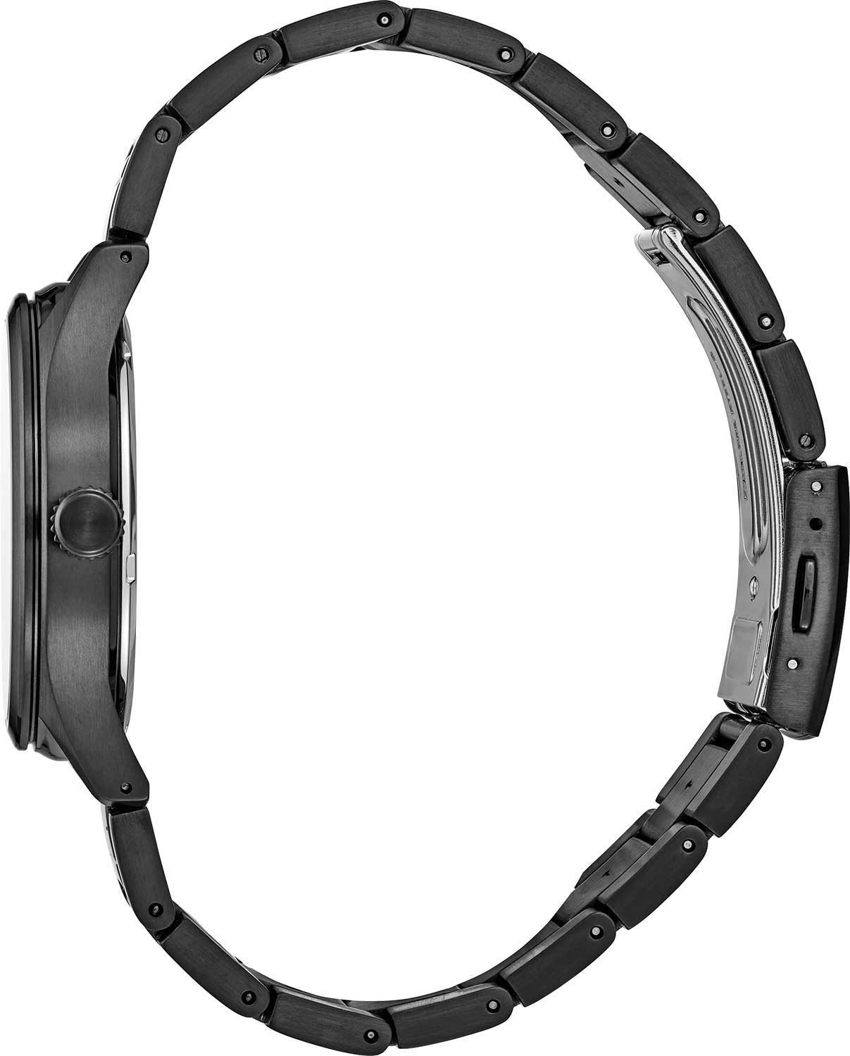 Окошко даты находится в положении 6 часов. Завинчивающаяся задняя крышка. Браслет с тройной раскладывающейся застежкой.