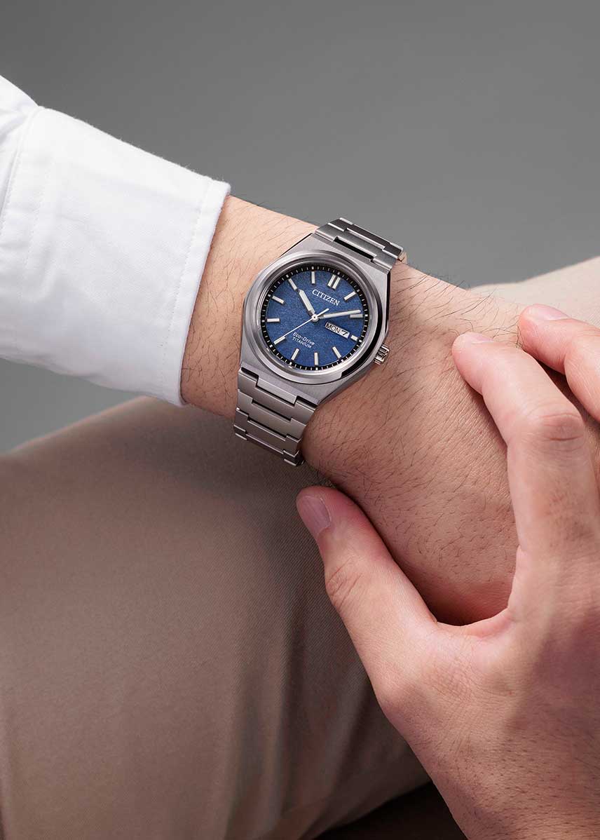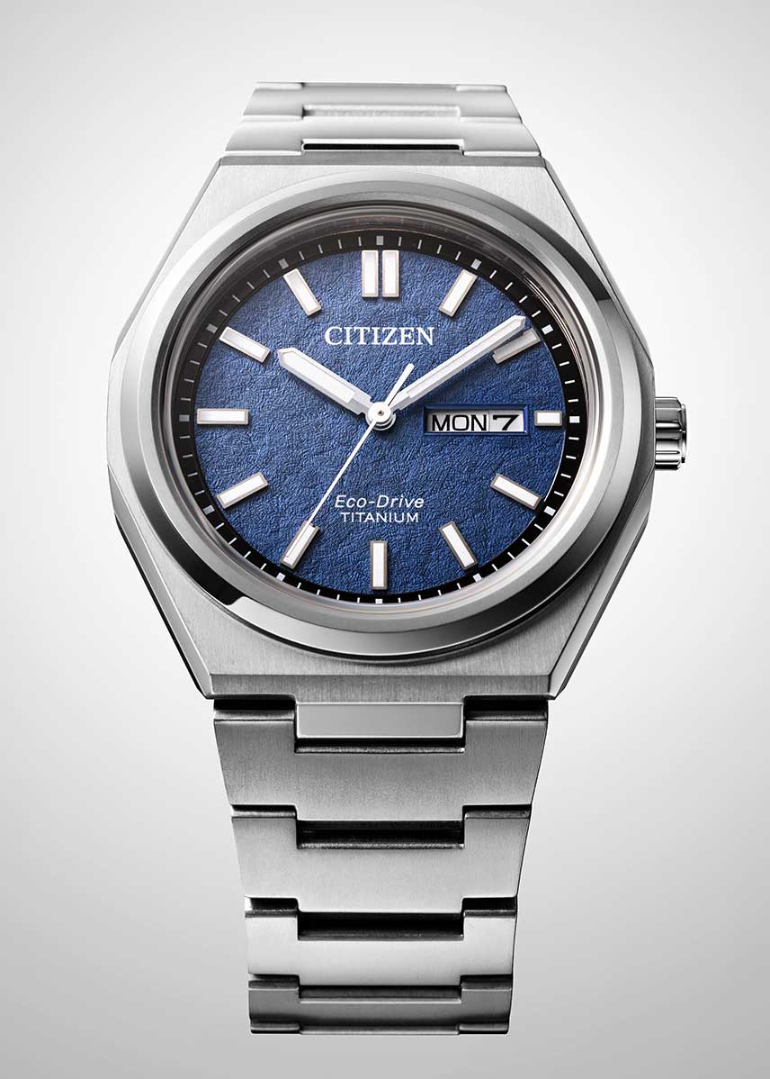 Название коллекции Zenshin, означающее «прогресс», символизирует инновационный прорыв Citizen, которая представила в 1970 году первые в мире часы из титана.