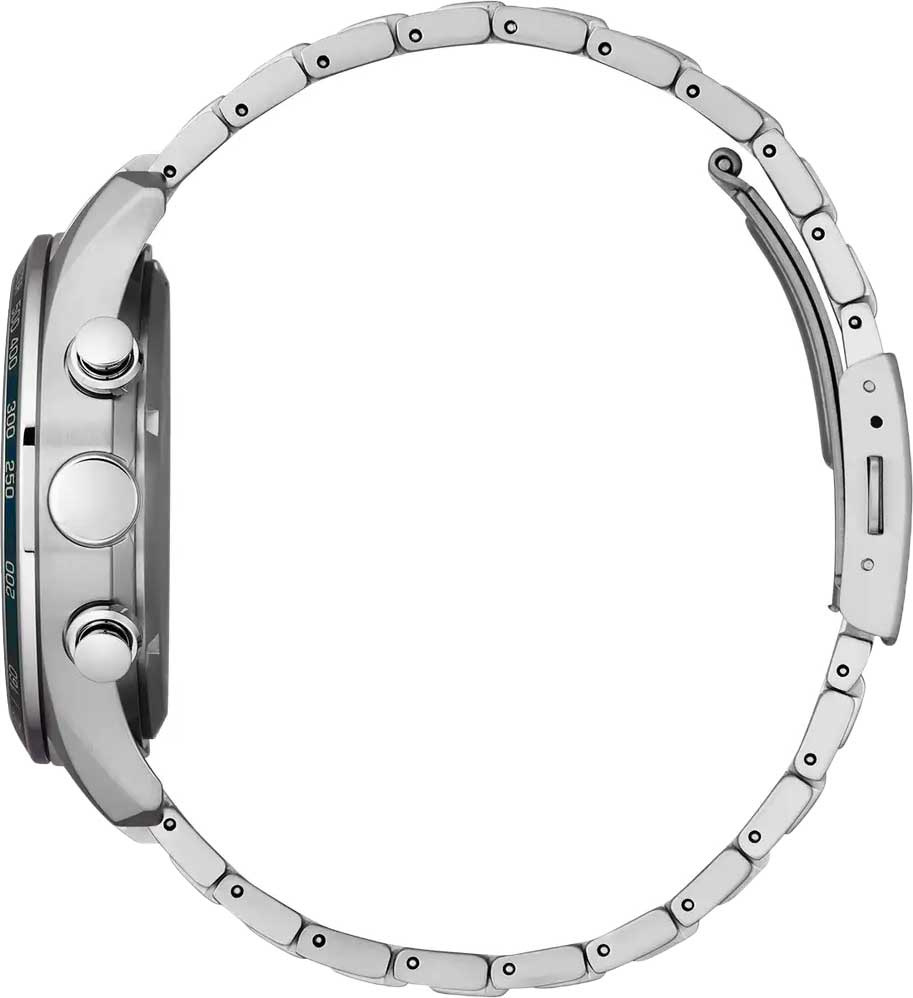 Циферблат выполнен по технологии Sunray (солнечные лучи) и защищен прочным сапфировым стеклом. Метки в виде штрихов. Окошко даты находится между отметками 4 и 5 часов. Браслет с раскладывающейся застежкой.