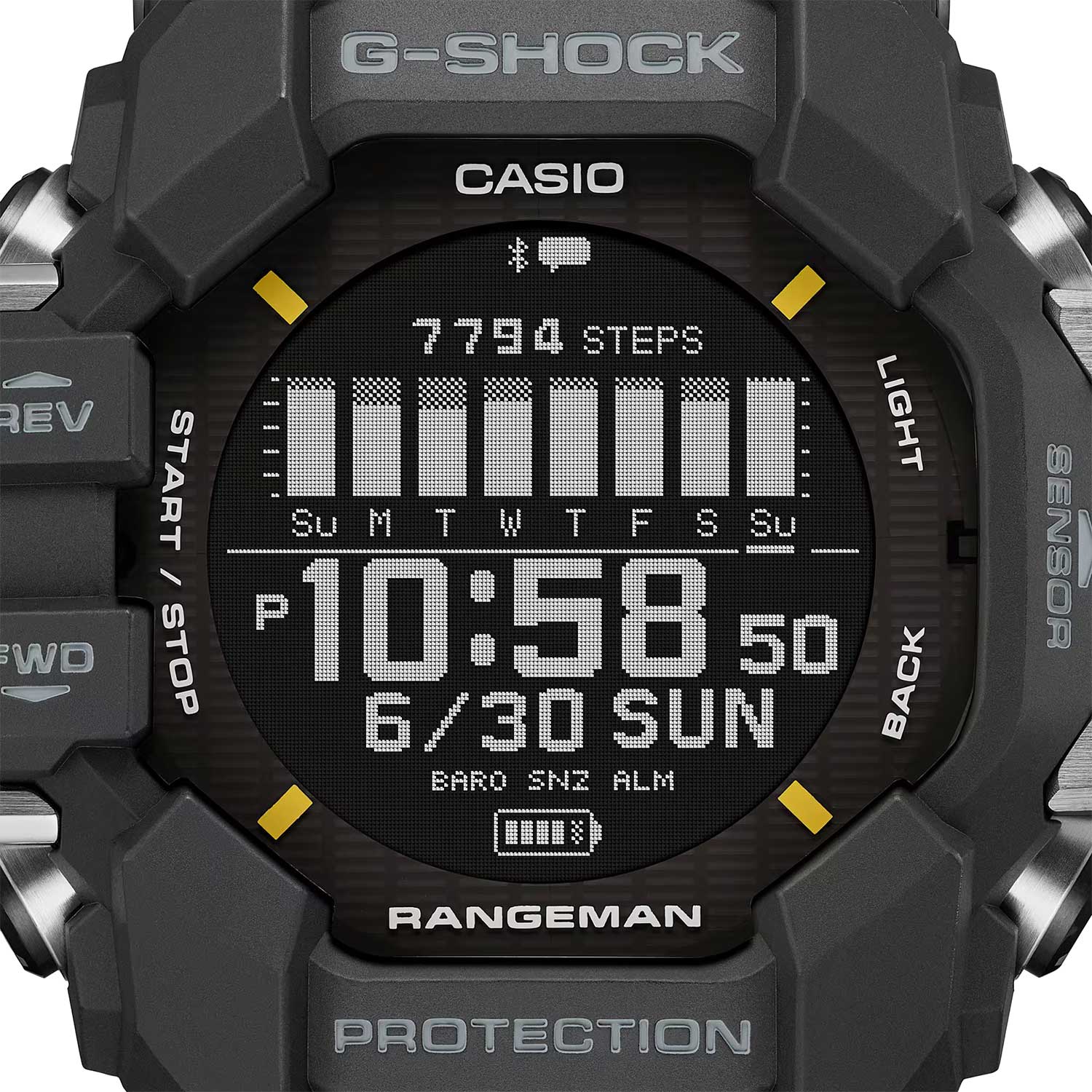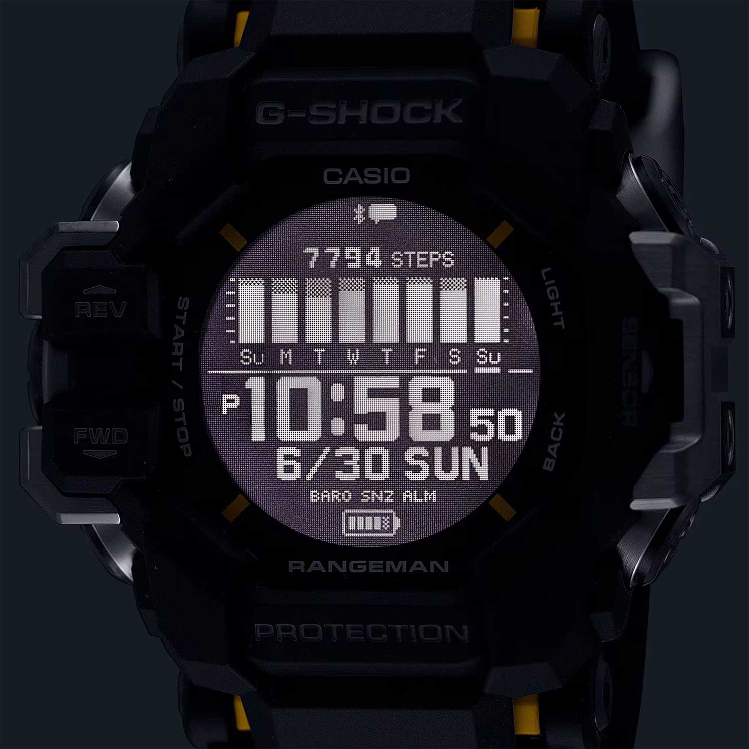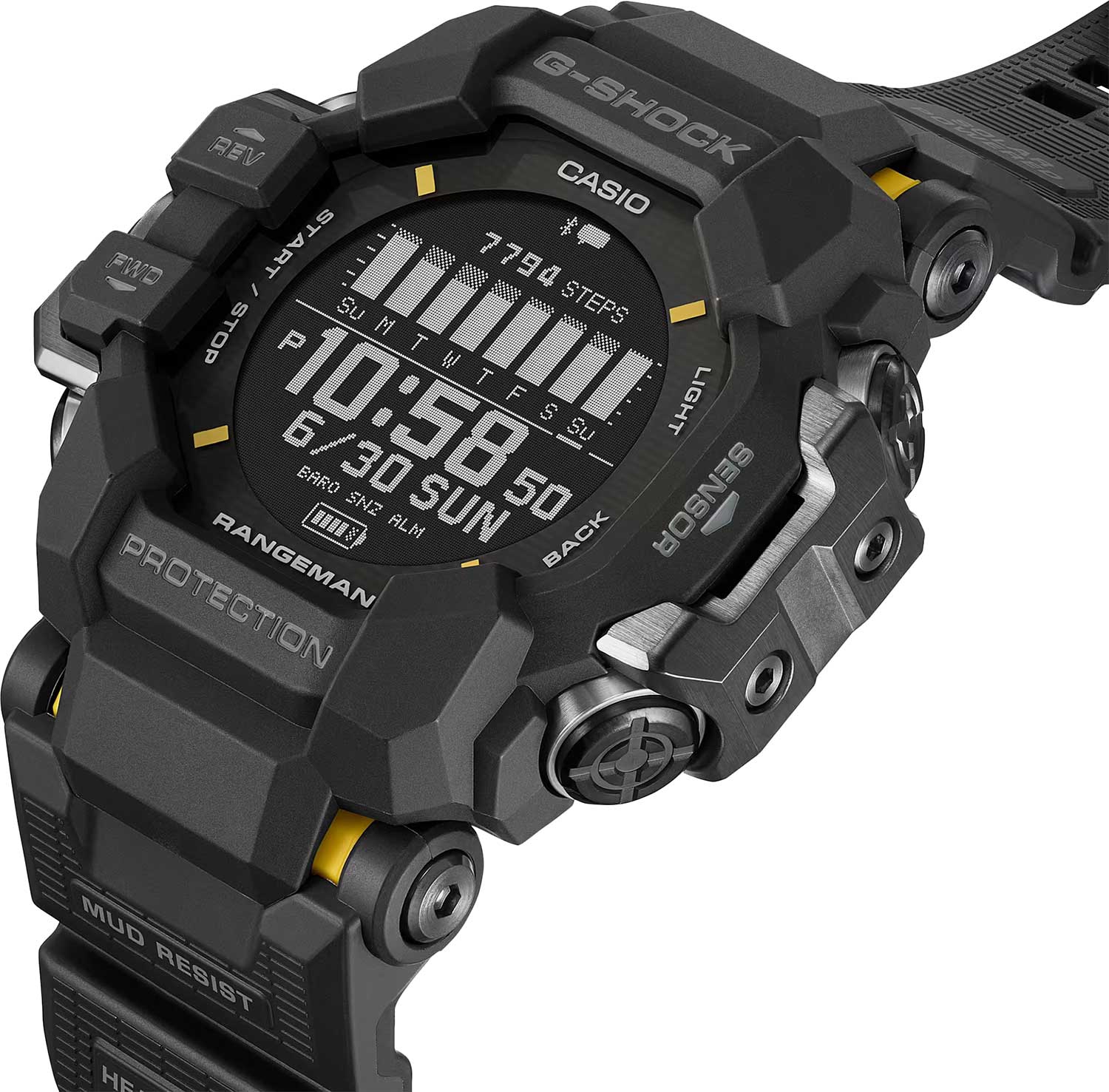 Мультиспортивные часы Rangeman Of G Mudmaster спроектированы и разработаны специально для работы в суровых условиях. Оснащены 7 датчиками (GPS, датчик сердечного ритма, акселерометр, гироскоп, магнитный датчик, датчик давления и термодатчик). Корпус и ремешок выполнены из биопластика, который изготавливается из возобновляемых органических ресурсов.